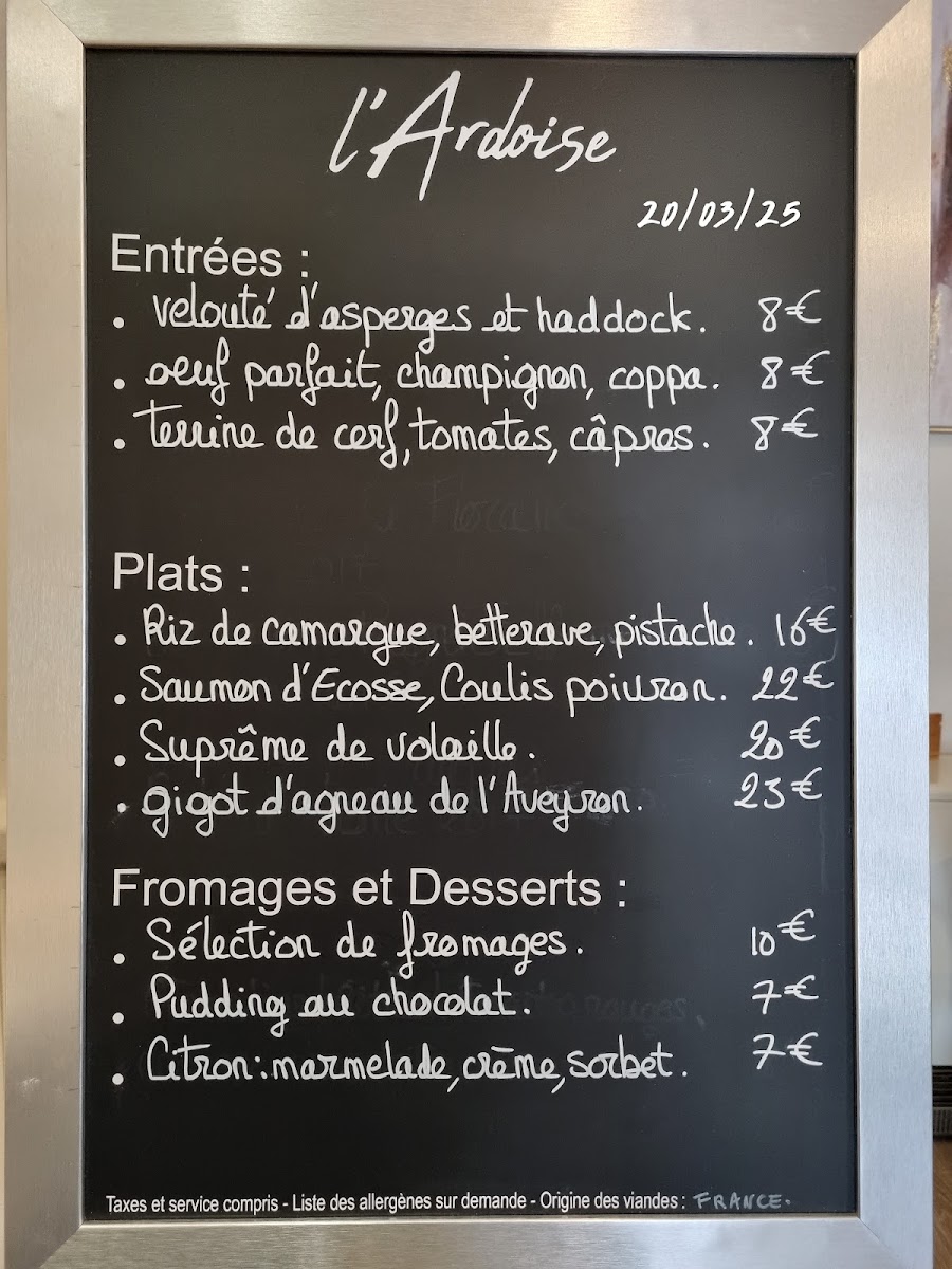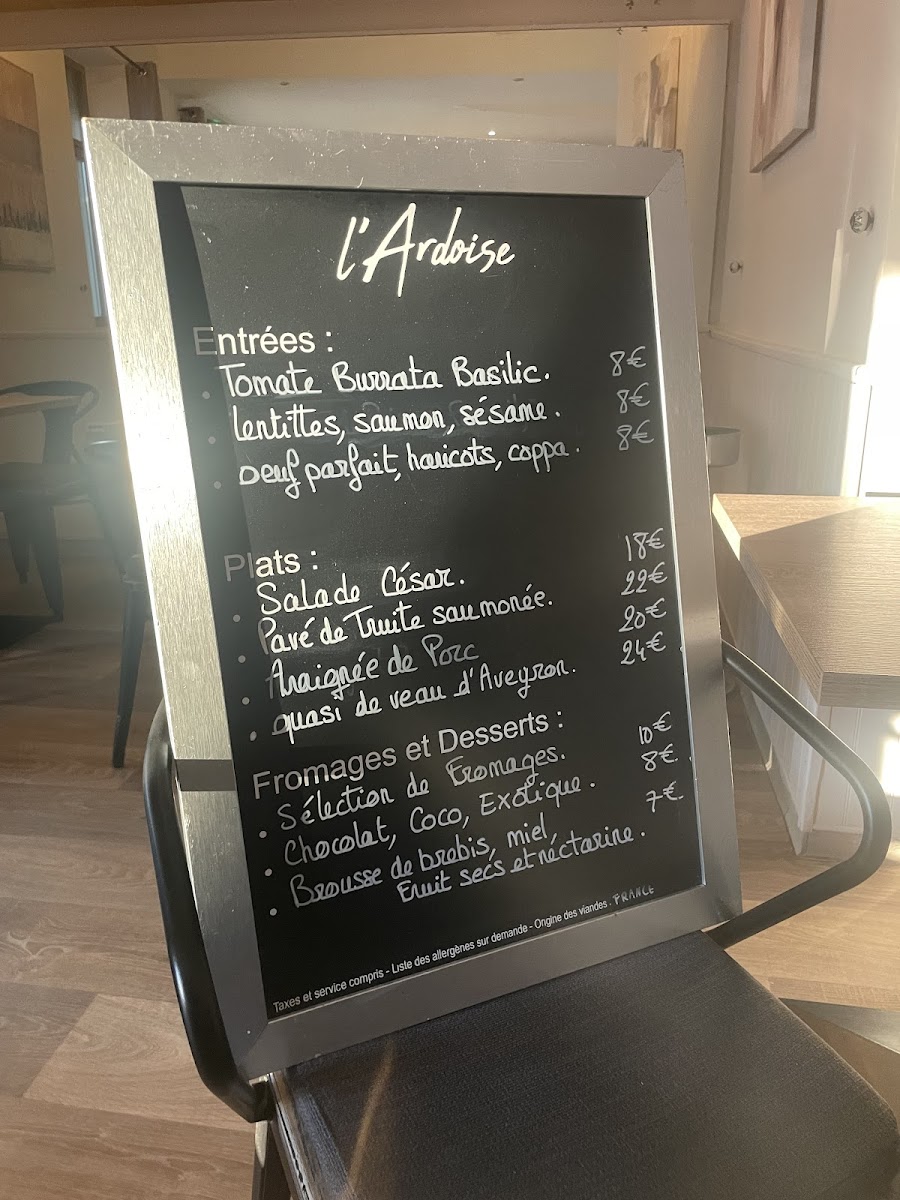 Welcome to Restaurant L'Ardoise, a charming French dining gem nestled in the heart of Mazan. This quaint eatery, run by a delightful couple, offers an intimate atmosphere complemented by a meticulously curated menu that highlights the essence of French cuisine. At L'Ardoise, every dish is crafted with passion and innovation, evident in customer favorites like the extraordinary gazpacho soup infused with thyme sorbet, which has left patrons raving. The menu features enticing options, with two-course meals starting at €27 and three-course options at €33, promising excellent value for an unforgettable culinary experience. Diners have praised not just the flavorful dishes but also the attentive service, making each visit feel special. Whether you are a local or just passing through, reserving a table at this exceptional restaurant will surely enhance your gastronomic journey in France. Indulge in the culinary mastery that L'Ardoise has to offer, where quality food meets warm hospitality.
